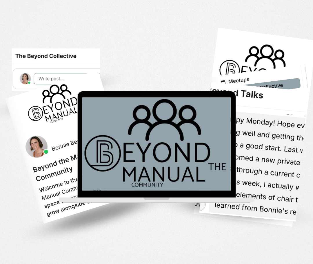 Through our private Beyond the Manual App, you can DM me anytime with your questions — from client struggles to business ideas — and I’ll be there to guide you. -